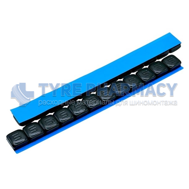 Стальные самоклеющиеся грузики покрытые черной эмалью с двусторонним скотчем на полиуретановой основе с пленкой синего цвета для мотоциклетных колес.